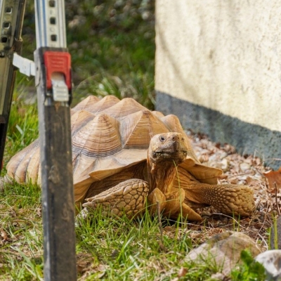 Unsere Bauaufsicht heißt Sahel und ist eine Spornschildkröte 🐢
