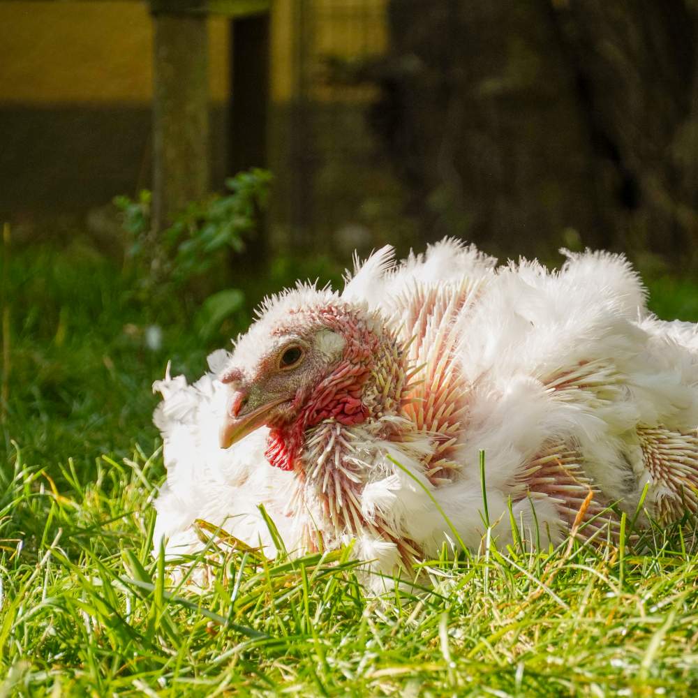 Lebensbedingungen, wie Ashley sie aus dem Leben vor ihrer Rettung kennt, wo sie mit Tausenden anderen Puten in einer Mastanlage eingesperrt war. Heute alles Vergangenheit für Ashley. Und ihre stachelige Erscheinung ist es auch bald wieder.