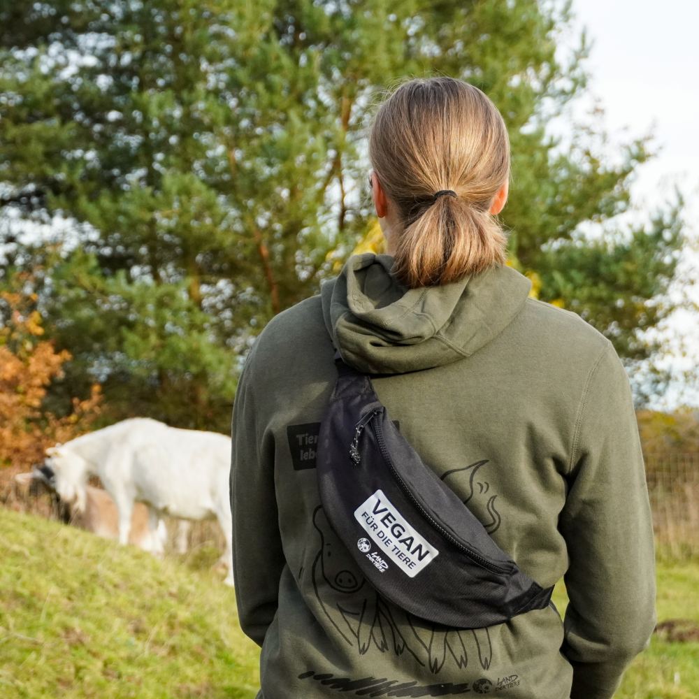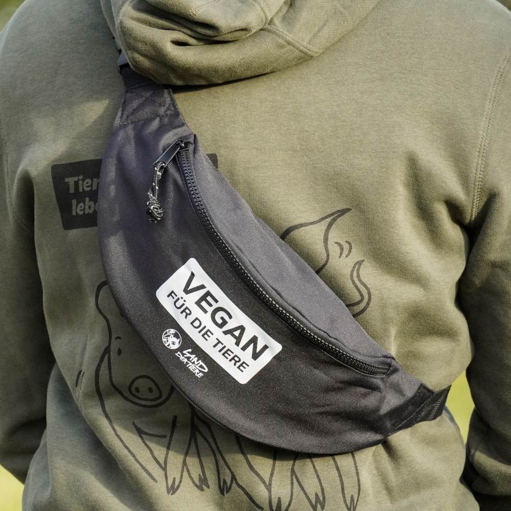 Ganz neu für euch in unserem Shop: unsere Statement-Bauchtasche „Vegan für die Tiere“ 🌱