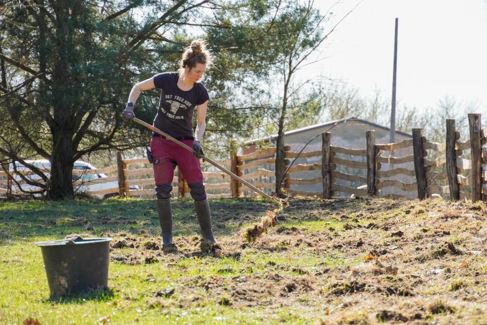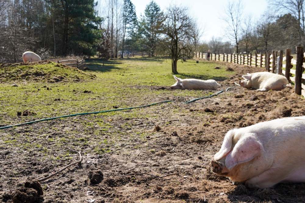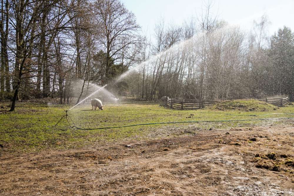 Dahinter steckt eine Menge Arbeit: Die Erde muss aufgelockert werden, die von den Schweinen fleißig aufgewühlten Krater ausgeglichen, die zahlreichen Steine, die dabei zu Tage kommen, eingesammelt und aus dem Schweineland entfernt. Am Ende wird eingesät und nun regelmäßig bewässert.