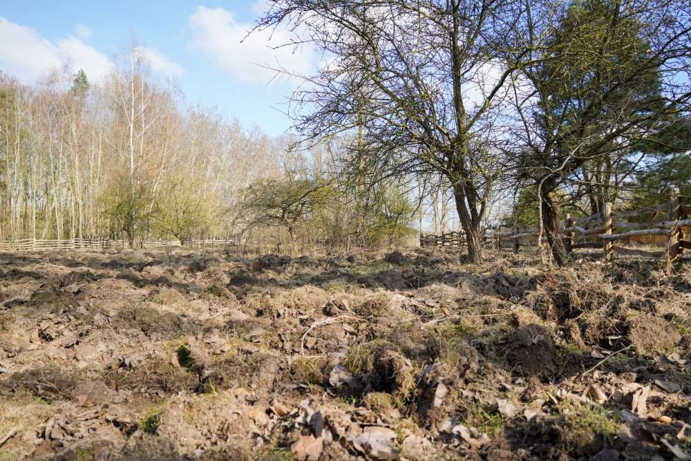 Das Wildschweineland hingegen wurde innerhalb kürzester Zeit intensiv von Resi und Pippa umgegraben und auf links gedreht. Auch hier soll natürlich wieder eine Wiese wachsen, aber die Vorbereitung dafür ist dann eher ein Projekt für den anstehenden Arbeitstag. Wie es bei den Wildschweinen gerade aussieht, könnt ihr auf den zwei Bildern vor der dösenden Resi sehen.