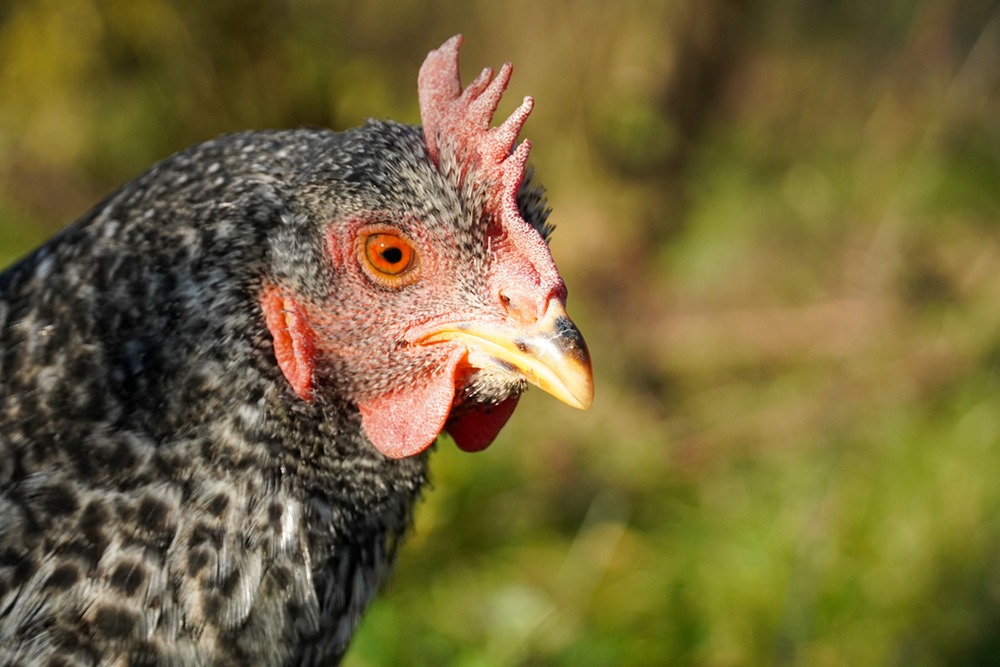 Blausperber-Hybrid-Henne Tuki ist eine von drei alte Hennen „von Privat“, die im Lauf der Jahre schon mindestens dreimal die „Besitzer“ gewechselt haben. Die Tochter der letzten Familie, 19 Jahre, hat sie im September 2025 zu uns gebracht, weil ihr Vater sie schlachten wollte, um sie loszuwerden. Was man so mit Hühnern macht, die nicht mehr legen und die man „weghaben“ will… Für die Tochter ging das zum Glück gar nicht. Die alten Mädels sind aktiv, haben bisschen Kalkbeinprobleme, leider eine von ihnen auch ein Schichteier-Problem. Nach ihrer Quarantänezeit werden sie trotzdem hoffentlich noch viel gute Zeit zusammen mit den anderen Hühnern im Land der Tiere haben können.