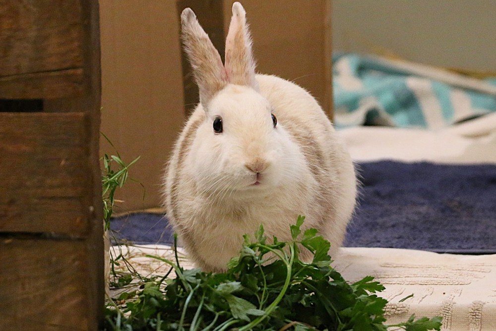 Herr Lili landete im Alter von wenigen Wochen im Tierheim Süderstraße. Angeschafft wurde er als „weibliches Zwergkaninchen“ – doch Herr Lili war keines von beiden, sondern ein junger Riesenkaninchenmann. Herr Lili hatte Glück, dass im Land der Tiere grade ein ziemlich gleichaltriges Riesenkaninchenmädchen auf der Suche nach einem Kumpel war. Und so zog er im April 2021 ein. Um zusammen mit Karotti herumzuhüpfen, zu kuscheln und jede Menge Spaß zu haben.