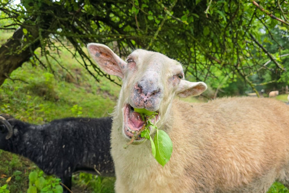 Die beiden sind vor zwei Jahren eingezogen, davor haben sie viel Schreckliches erlebt. Sie wurden zusammen mit anderen Tieren ihrem Halter weggenommen und haben zum Glück einen Lebensplatz im Land der Tiere gefunden. Hier sind die beiden keine „Nutztiere“ mehr, sondern einfach Mälla und Biene, zwei Persönlichkeiten, die auf ihre eigene Weise leben wollen und können.