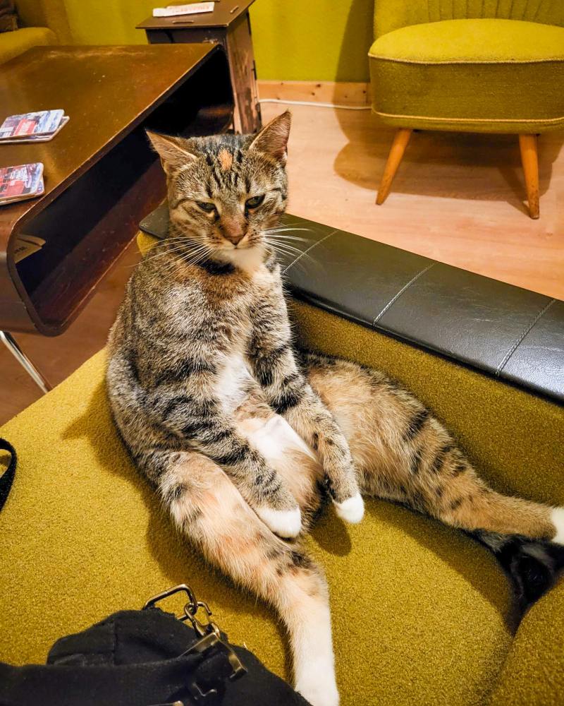 Heute läuft sie munter durchs Land und begrüßt ihre Menschen mit einem fröhlichen „Brrrrr“, hat ihre Lieblingsbunker, rollt sich gerne mal in der Sonne oder hält Mittagsschlaf im Büro. Von ihrem „Zieh-Onkel“ Klaus konnte sie lernen, was wichtig ist. Die Hunde sind ihr weiterhin nicht geheuer, aber sonst wird sie immer mutiger, was ihre Entdeckungstouren durchs Land angeht.