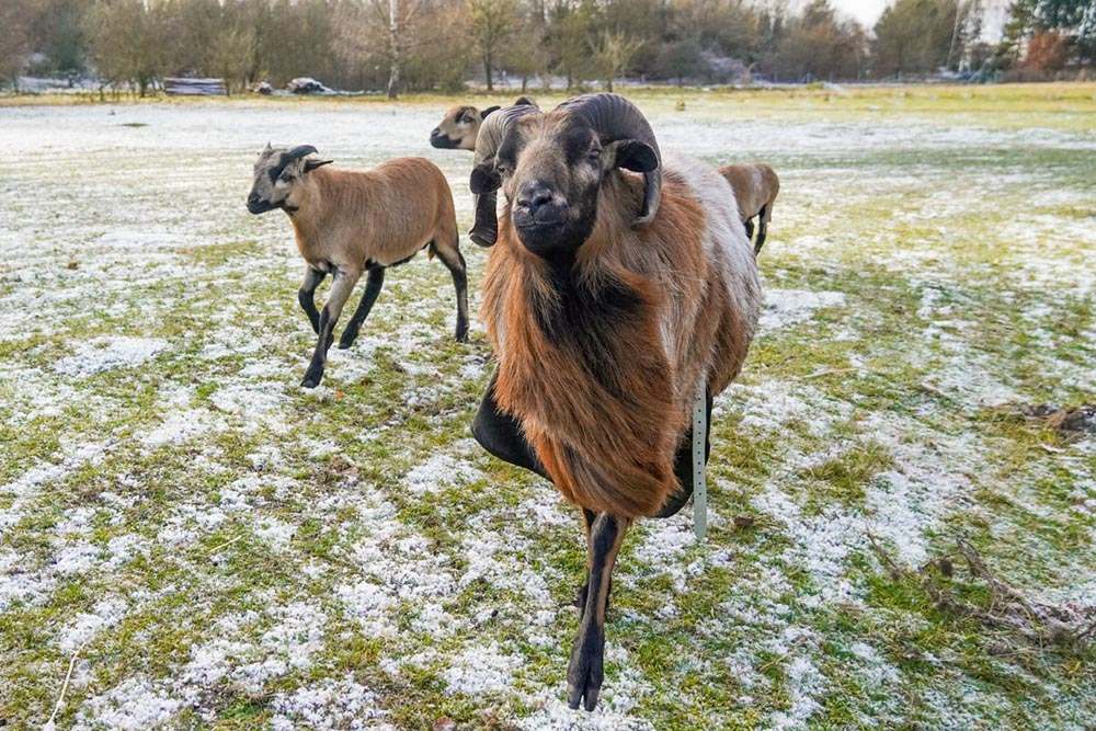 Die beiden Guteschafe (eine alte gotländische Schafrasse) Halvar & Ylva stammen aus demselben Haushalt wie die Hühnerfamilie mit Nachnamen „Wurm“. Wir holten sie im Oktober 2024 nach dem Tod ihres Besitzers zu uns. Der alte Halvar und seine Freundin Ylva waren in keinem guten Pflegezustand, litten unter Darmparasiten, Lungenwürmern und mehr. Bei Halvar kam dann nach Fieber und Lungenentzündung auch noch ein Lippengrind-Ausbruch dazu, außerdem ist er in seiner Mobilität eingeschränkt, weswegen die beiden aktuell auch noch zusammen mit den Ziegen in einem kleineren Bereich leben. Trotz der gesundheitlichen Beschwerden können Halvar und Ylva nun endlich ihr neues Leben genießen.