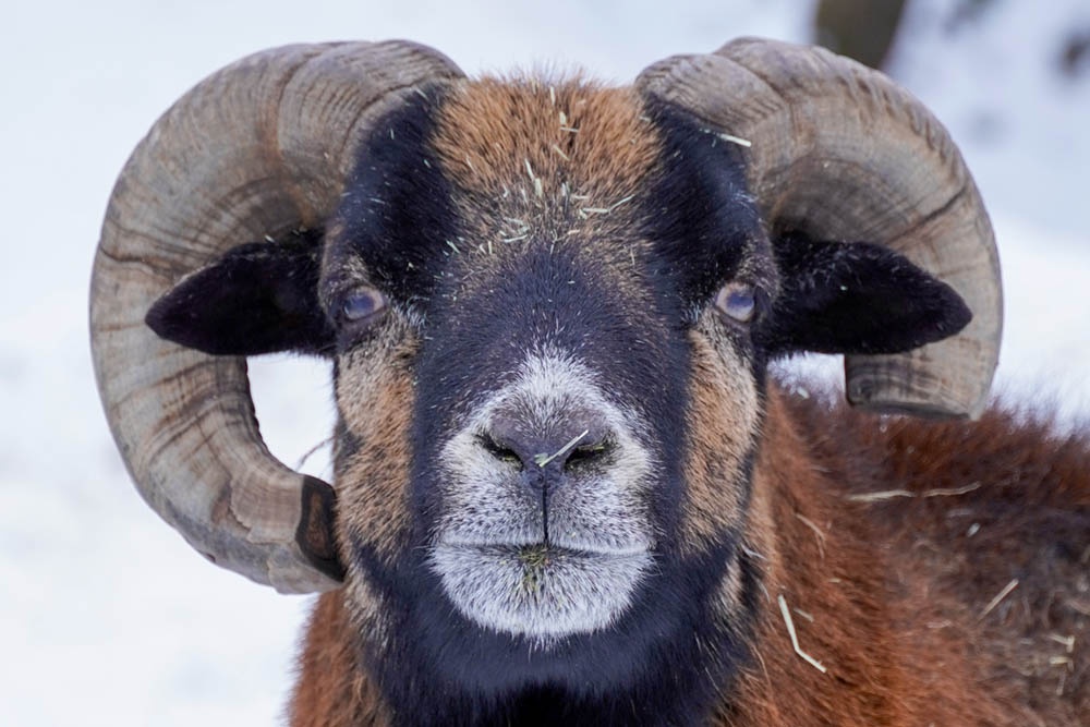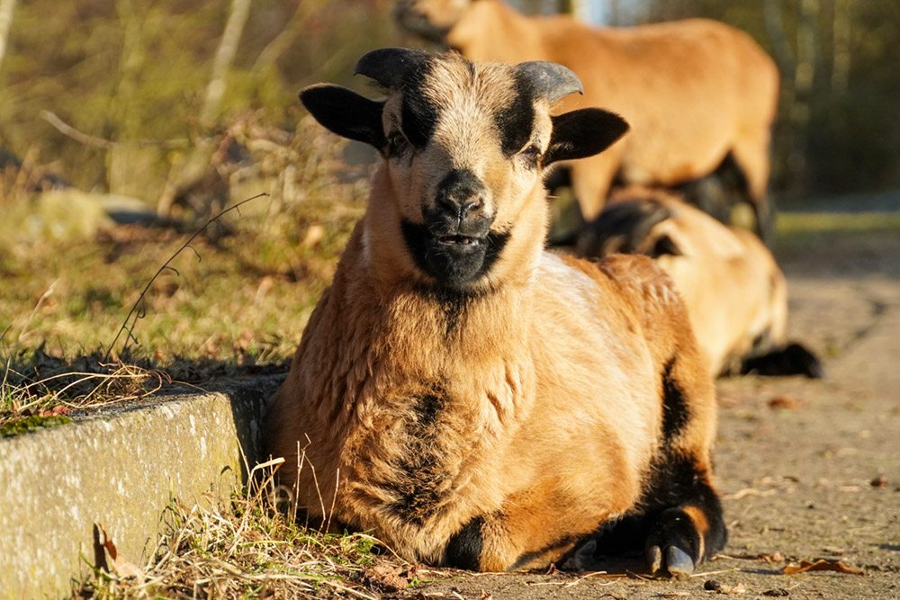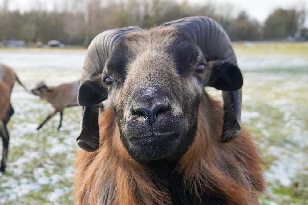 Simba wurde Ende Mai 2022 ganz in unserer Nähe auf der Bundesstraße 5 gefunden. Die von einer Autofahrerin informierte Polizei war keine Hilfe, der ältere Kamerunschafbock sei „vermutlich verwildert“. Am Tag darauf lag er einfach dort neben der Straße, wie jemand, der auf Hilfe wartet. Die hatte er auch dringend nötig: eines seiner Hörner war ihm vor langer Zeit in die Backe gewachsen und hatte sie durchbohrt, die Wunde war fies, viele Monate voller Schmerzen musste er hinter sich haben.