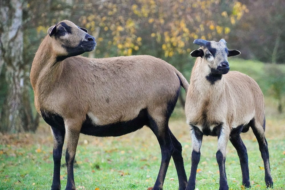 Greta und ihre Gefährtin Lissi waren die letzten Überlebenden einer kleinen Kamerunschafhaltung in unserer Nachbarschaft. Und dann kam der Tag, wo ihre beiden alten Menschen sich nicht mehr um sie kümmern konnten. Als wir sie im März 2025 ins Land der Tiere holten, waren die beiden älteren Mädels erst ein bisschen schüchtern – aber schon nach den ersten Tagen war klar, dass sie die Gesellschaft der anderen Schafe toll finden. Am wichtigsten für die etwa achtjährige Greta und ihre über zehnjährige Gefährtin Lissi ist, zusammen zu sein: wo die Eine ist, ist auch die Andere. Hoffentlich noch viel gute Zeit lang.