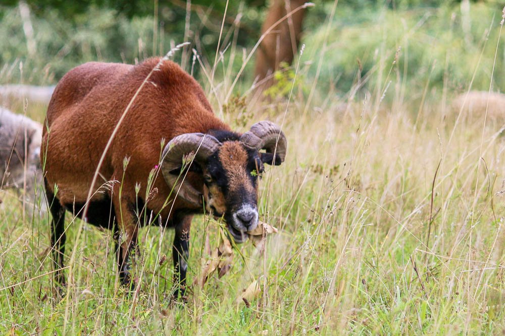 Marie zog Ende Juli 2016 im Alter von 7 Jahren zusammen mit Ferdinand, Emma und Luise ins Land der Tiere ein. Ihre Menschen, wo sie von Lämmerbeinen an gelebt hatten, trennten sich aus privaten Gründen von ihnen – die vorherige Suche nach einem guten und „schlachtfreien“ Zuhause verlief erfolglos, und so sagten wir der Rauhwolligen Pommerschen Landschaftruppe einen Lebensplatz zu.
