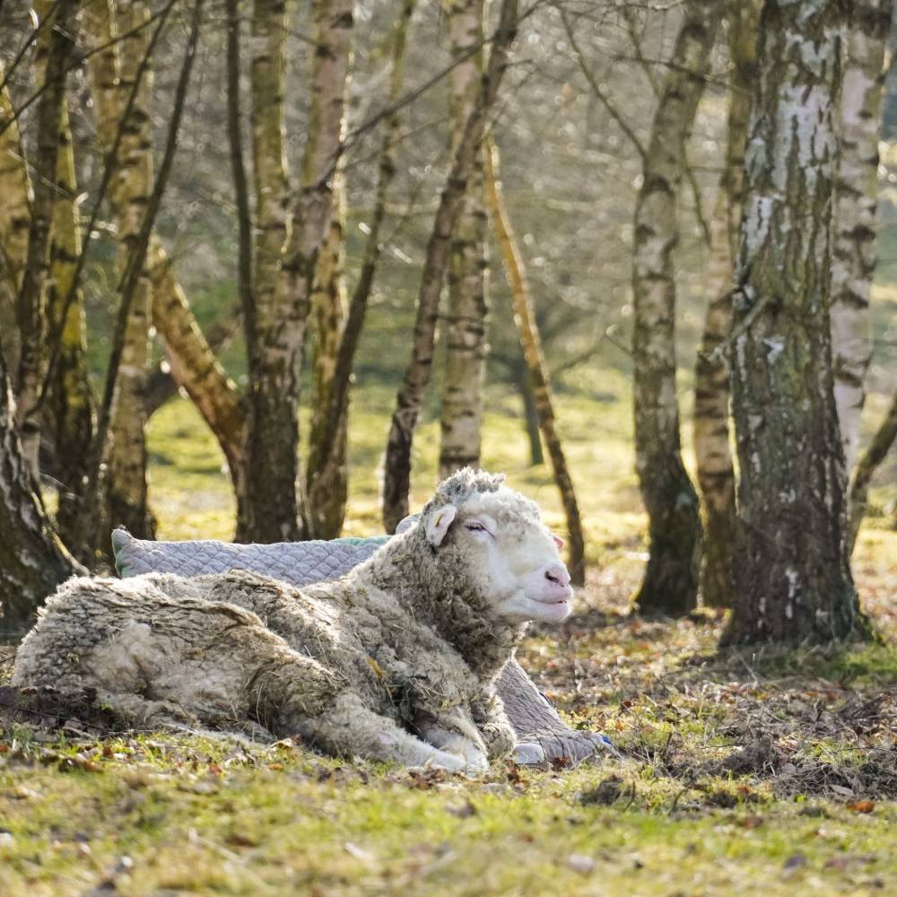 Sina hat heute ihren 14. Geburtstag. Geistig ist sie noch absolut fit, genießt jede Aufmerksamkeit, jedes Essen, jede Streicheleinheit, aber ihr alter Körper macht ihr schon lange zu schaffen. Nach einem Bänderriss im Knie, der zu ihrer Arthrose dazu kam, wurde sie zunehmend immobiler, benötigt oft bzw. immer Aufstehhilfe. Die sehr kalte Zeit jetzt hat sie ausschließlich im Stall verbracht. Und immer wieder dachten wir, sie hat nie wieder so einen schönen Tag, an dem sie einfach draußen zwischen den anderen Schafen in der Sonne liegen kann. Machten gedanklich alle paar Tage einen letzten Tierarzttermin für sie. Aber Sina resignierte nicht. Wir auch nicht, stellten noch einmal ihre Schmerztherapie um. Und jetzt liegt sie draußen. Konnte sogar ein Stück weit mit den anderen Schafen Spazierengehen. Freie Entscheidungen treffen, die ihr Körper ihr von kurzer Zeit nicht möglich machte.